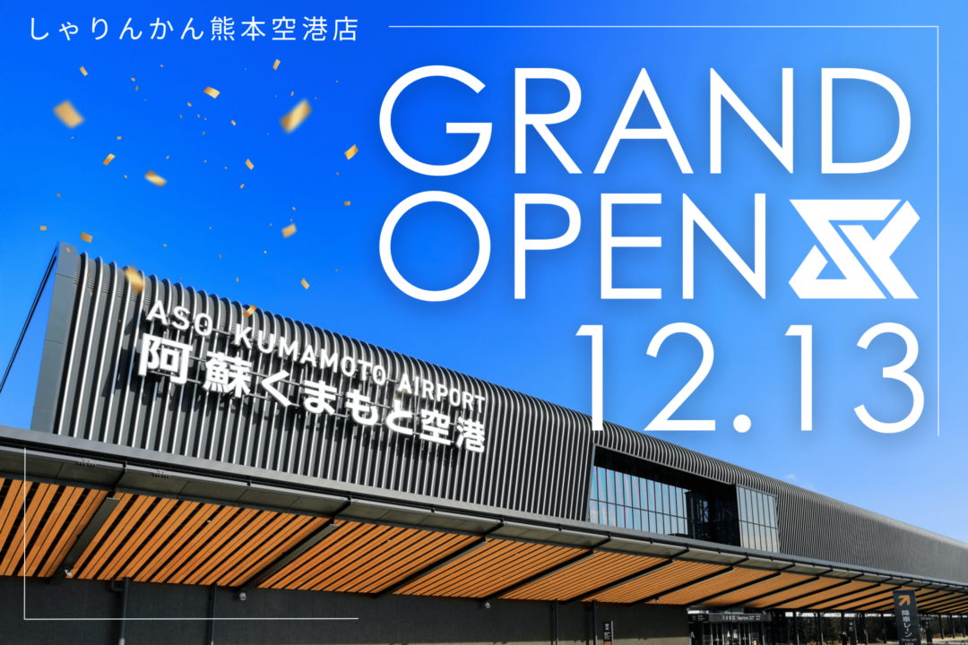 12月13日に阿蘇くまもと空港に「しゃりんかん阿蘇くまもと空港店」がグランドオープンいたします。