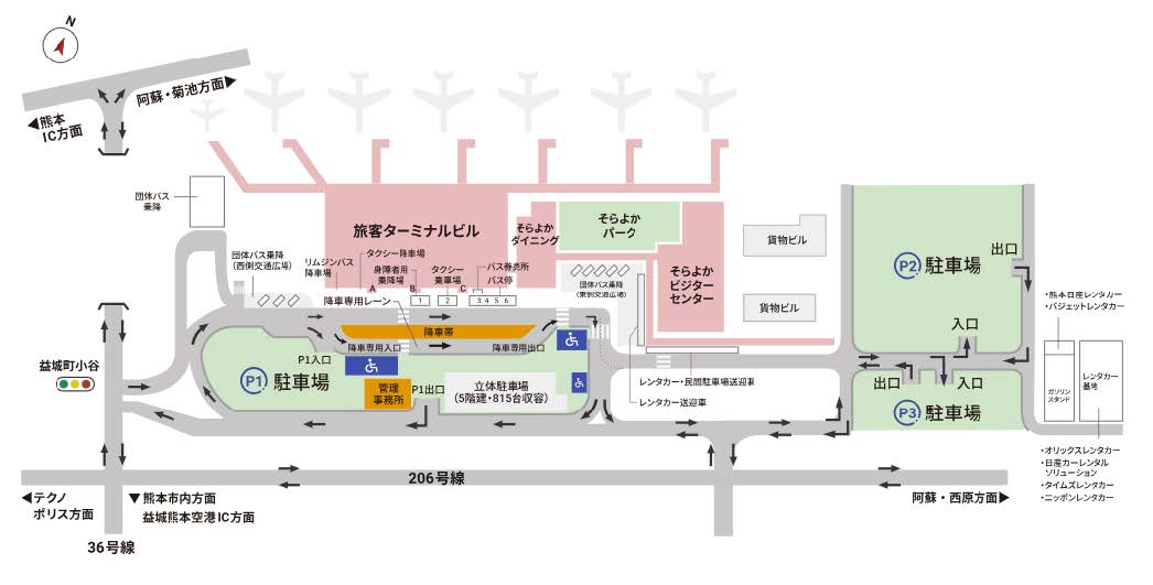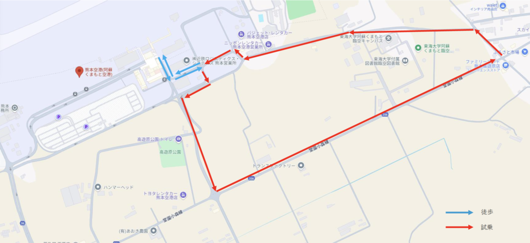 阿蘇くまもと空港一方通行が多いため、自転車から降りて押し歩きをおすすめしております。